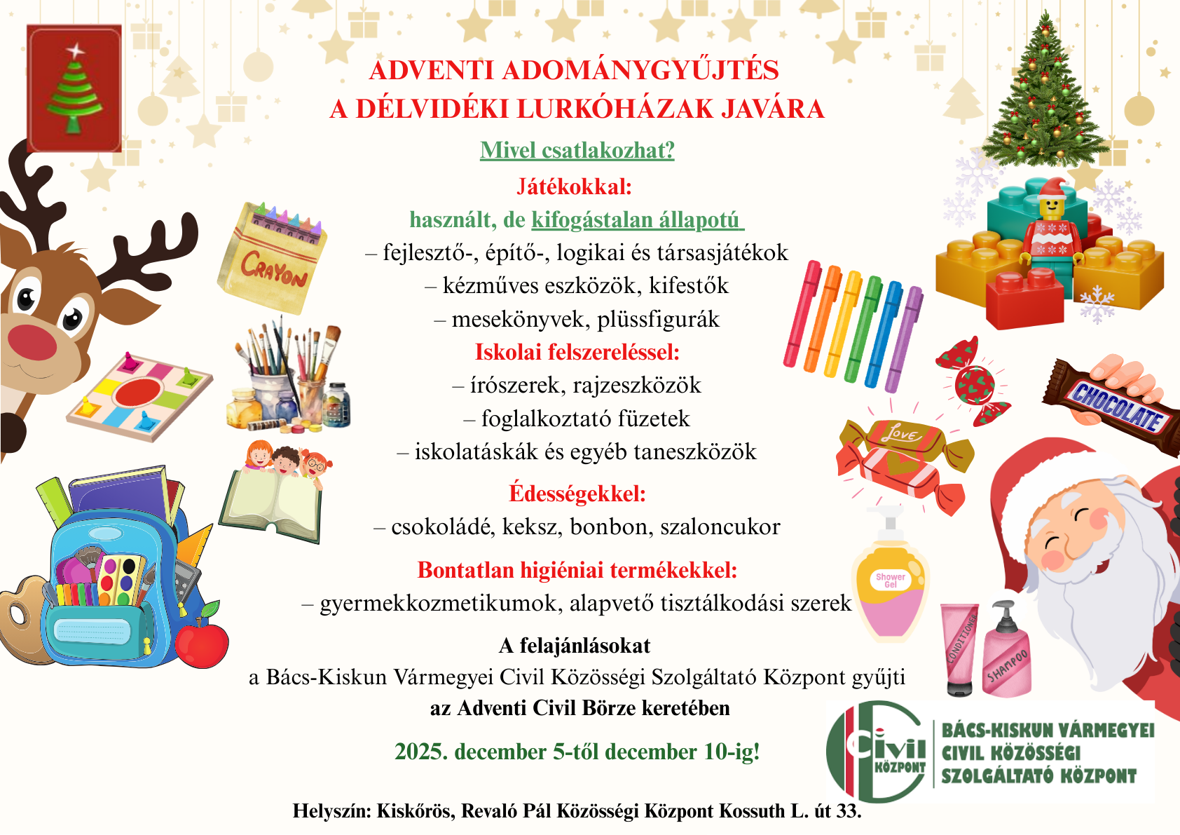 MENTS MEG HÁROM ÉLETET! A Miniszterelnökség Civil Kapcsolatok és Társadalmi Konzultációs Főosztálya az Országos Vérellátó Szolgálattal , a Magyar Vöröskereszt együttműködése keretében -, valamint a Bács-Kiskun Vármegyei Civil Közösségi Szolgáltató Központok szervezésében. 2026. FEBRUÁR 23-tÓl 27-ig ismét meghirdette a XIV. Civil Véradási programot. A Főnix Kulturális és Ifjúsági Egyesület, mint a Bács-Kiskun Vármegyei Civil Közösségi Szo...