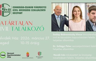 A Csongrád-Csanád Vármegyei Civil Közösségi Szolgáltató Központ tevékenysége és programjai a Miniszterelnökség és Bethlen Gábor Alapkezelő Zrt. támogatásával valósulnak meg,