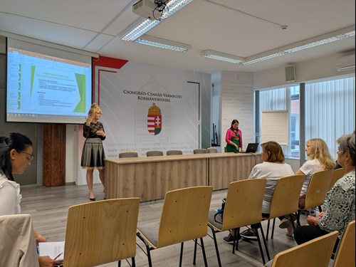A köszöntőt követően Molnár Elvira, a Csongrád-Csanád Vármegyei Civil Közösségi Szolgáltató Központ szakmai vezetője tartotta meg prezentációját.